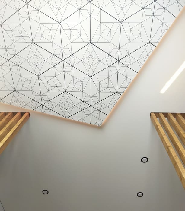 Парящий потолок визуально увеличивает пространство, рассеиваемый свет создает эффект невесомости, потолок "парит в воздухе."