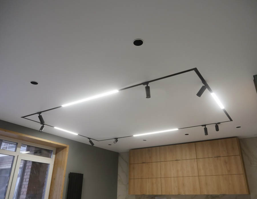 Трековая освещение - система, в которой светильники крепятся и передвигаются по шинопроводу, возможность изменять направление света.